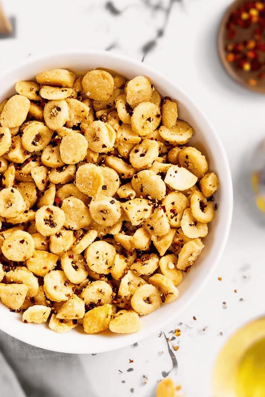 Use canola or safflower but flavor flattens. Avocado oil adds richness, oily mouthfeel is softer. Butter not advised; melts crackers or overpowers spices. Olive oil too strong, masks ranch spice. If using substitutes, watch absorption time and toss more often to avoid clumps or dryness.