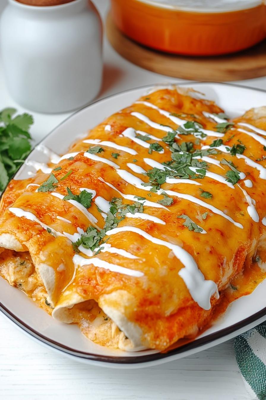 - 💡 Cooling enchiladas 3-5 minutes before serving firms filling and helps cutting clean slices. Use thin spatula to lift rolls carefully. Sour cream or Greek yogurt topping cuts richness and balances heat. Swap cilantro for parsley or green onion if bitterness not preferred, but changes brightness level drastically.