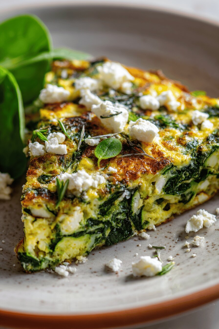 Onion and garlic provide the soft aroma base, nothing overpowering but necessary for depth. Olive oil splits into two parts: one to sweat aromatics, one for cooking greens and setting eggs gently without sticking. Spinach can be baby or regular leaf, chopped to manageable size. Zucchini shredded for texture and subtle moisture, not watery but enough to keep eggs tender. Feta cheese, salty and slightly creamy, replaces the usual parmesan, providing a different note. Dill chopped fresh, not dried, because it adds a crisp herbal freshness that parsley or basil can’t replicate. Salt and freshly ground pepper, adjusted at whisking stage and again at serving if needed. Skillet with nonstick surface helps avoid extra fats or sticking, a 9-inch size fits the volume perfectly – no crowding, even cooking. All parts measured but flexible. Swap veggies, cheese, herbs to your mood, but keep roughly same quantities for balance of moisture and flavor.