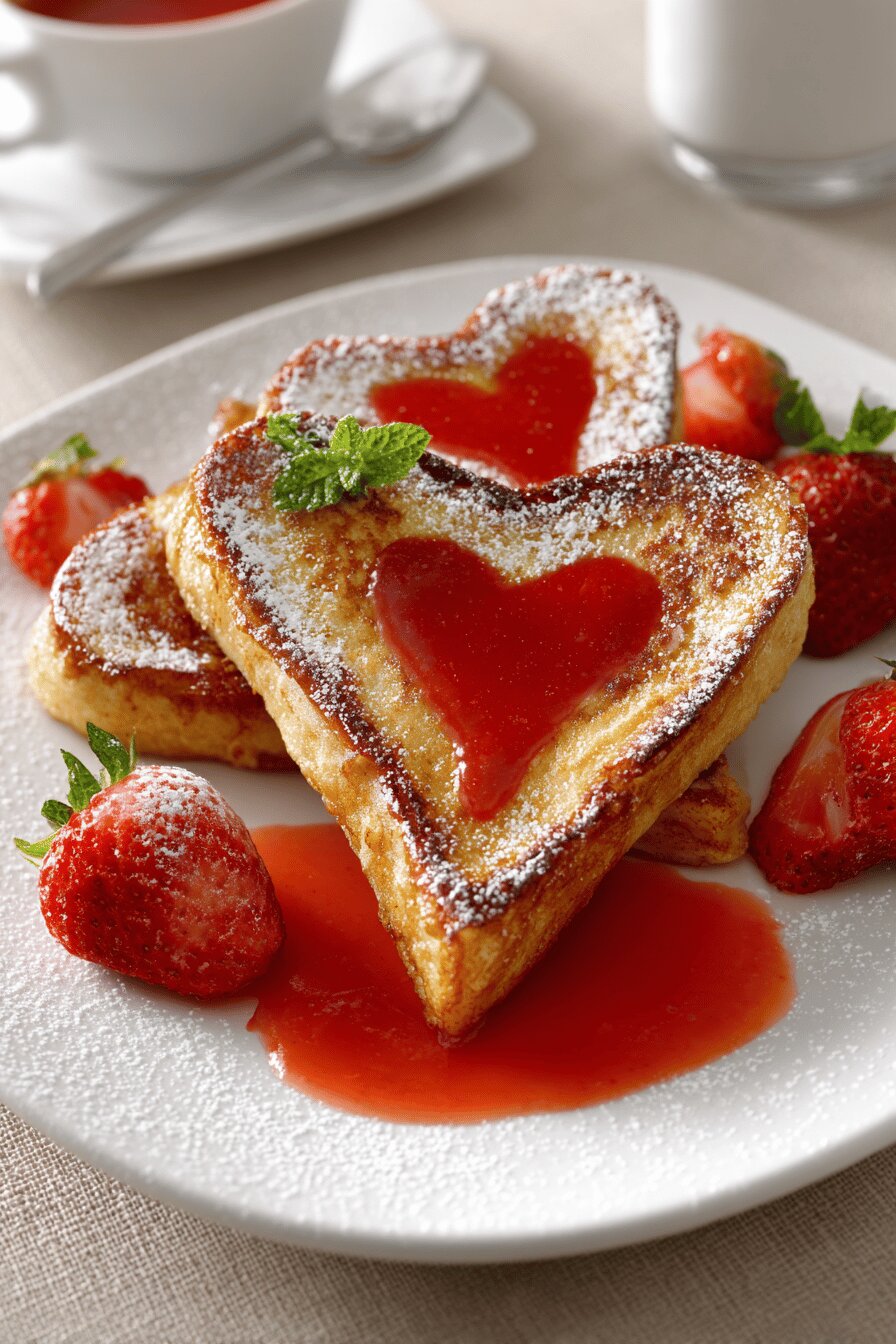 - 💡 Cutting hearts while toast still warm works best or shapes warp. Use sharp edges, press straight down quick. Makes fun but also quick to do before sugar dusting. Leftover bits not wasted—snack on them. Dust powdered sugar right before serving to keep snow effect. Delay and sugar melts or clumps, losing contrast. Presentation a quick last step but sets tone.