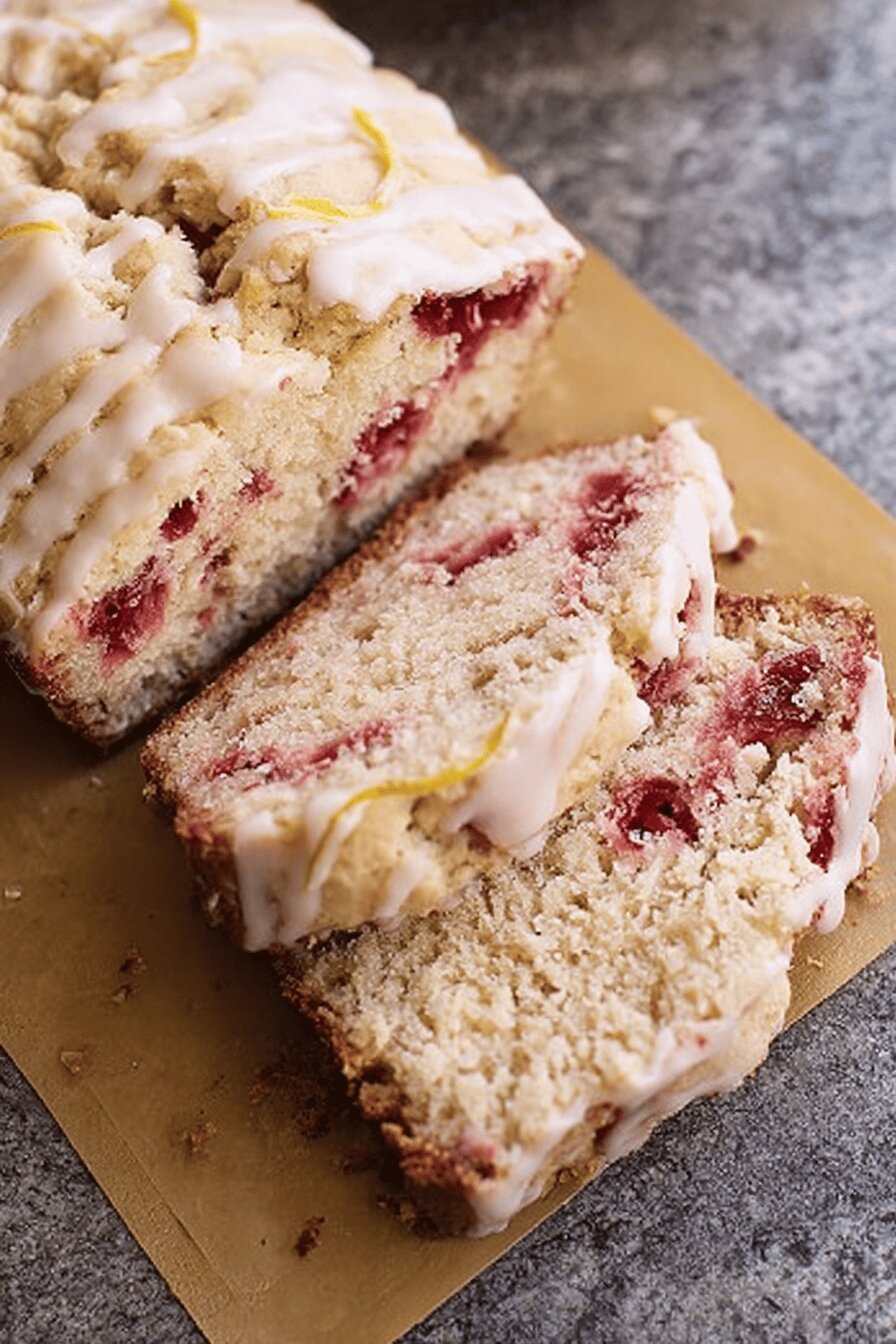 A tangy, moist loaf with fresh strawberries and a bright lemon bite. Yogurt keeps it tender, applesauce replaces oil for moisture and a lighter crumb. Flour dusts the berries to avoid sinking. A simple glaze made of powdered sugar and lemon zest crowns the loaf with a sweet-tart finish. Baking cues rely more on scent and texture than times—listen for the soft crack as crust sets; toothpick test for internal doneness. Sub vanilla with almond extract for a nutty twist or swap strawberries for blueberries. Don’t overfold berries or color bleeds. Cooling on rack is essential to keep crust crisp beneath the glaze.