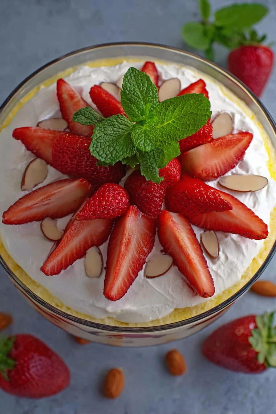 - Just before serving, arrange reserved whole strawberries and fresh mint sprigs on top. Fallout from an ingredient imbalance? Crumbled wafers can add crunch garnish instead.