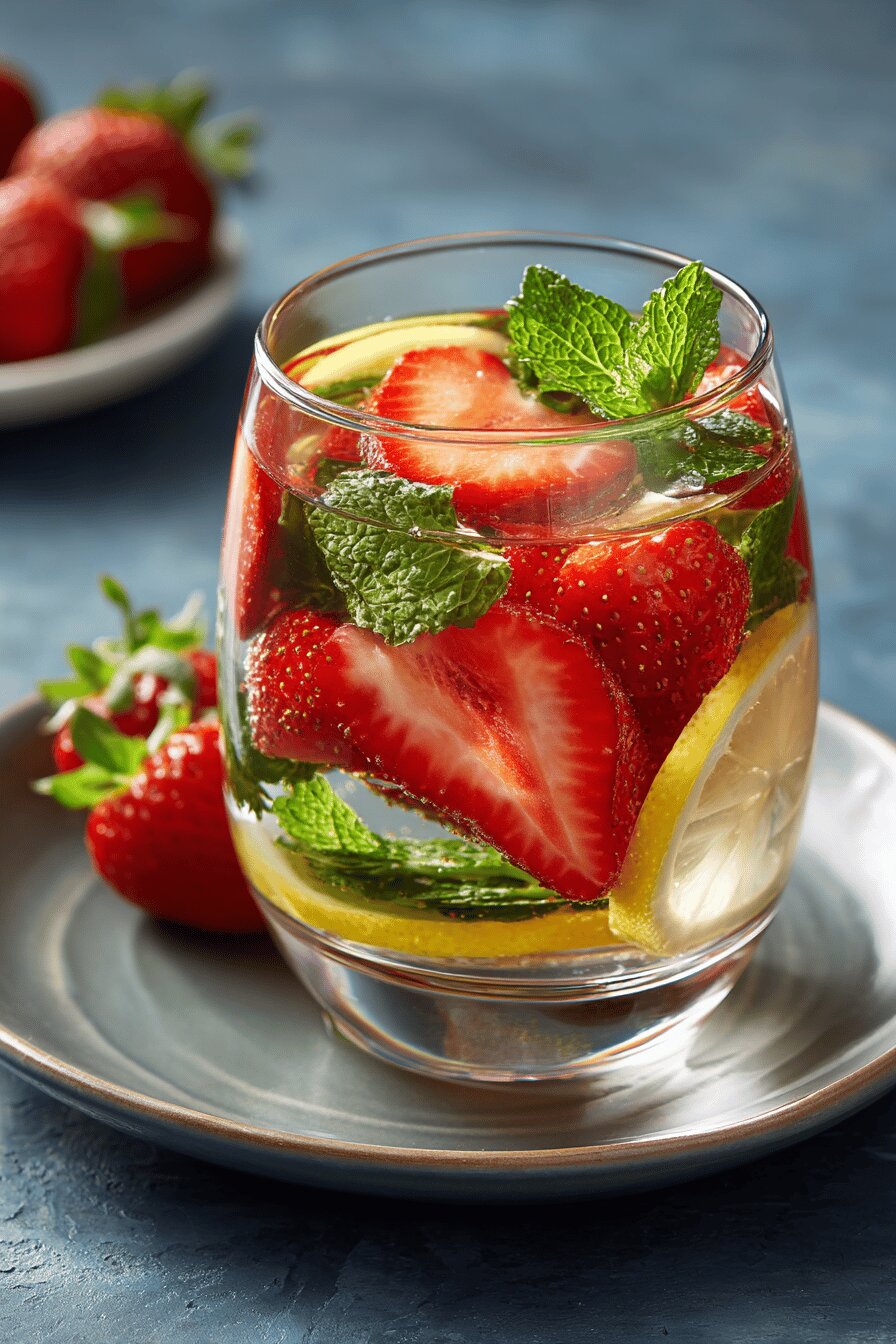 - 💡 Use fresh, firm strawberries. Soft or overly ripe ones turn mushy quickly, cloud water, risk off-flavors. Halve them instead of thin slicing to slow breakdown. Mint leaves torn roughly release more oils but should not shred to pulp. Crushing or muddling kills fresh texture, bitterness can spike. Can swap mint for basil or lemon balm if fresh verbena unavailable. Verveine brings grassy tones; mint cools and brightens more. Experiment with lime instead of lemon for sharper citrus zip.