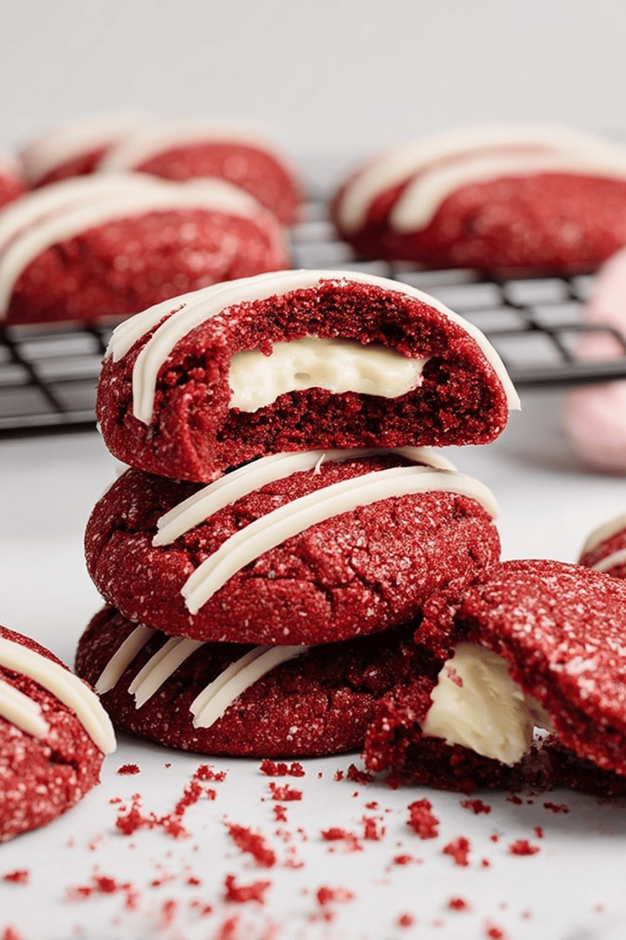 - 💡 Bake till edges pale golden, centers soft—not glossy raw but not dry. Aroma rich cocoa vanilla invites close nose. Cooling: rest 5 min on pan, then rack full cool before chocolate drizzle. White chocolate melts fast; low heat, short bursts in microwave, stir often to avoid grainy or burnt patches.