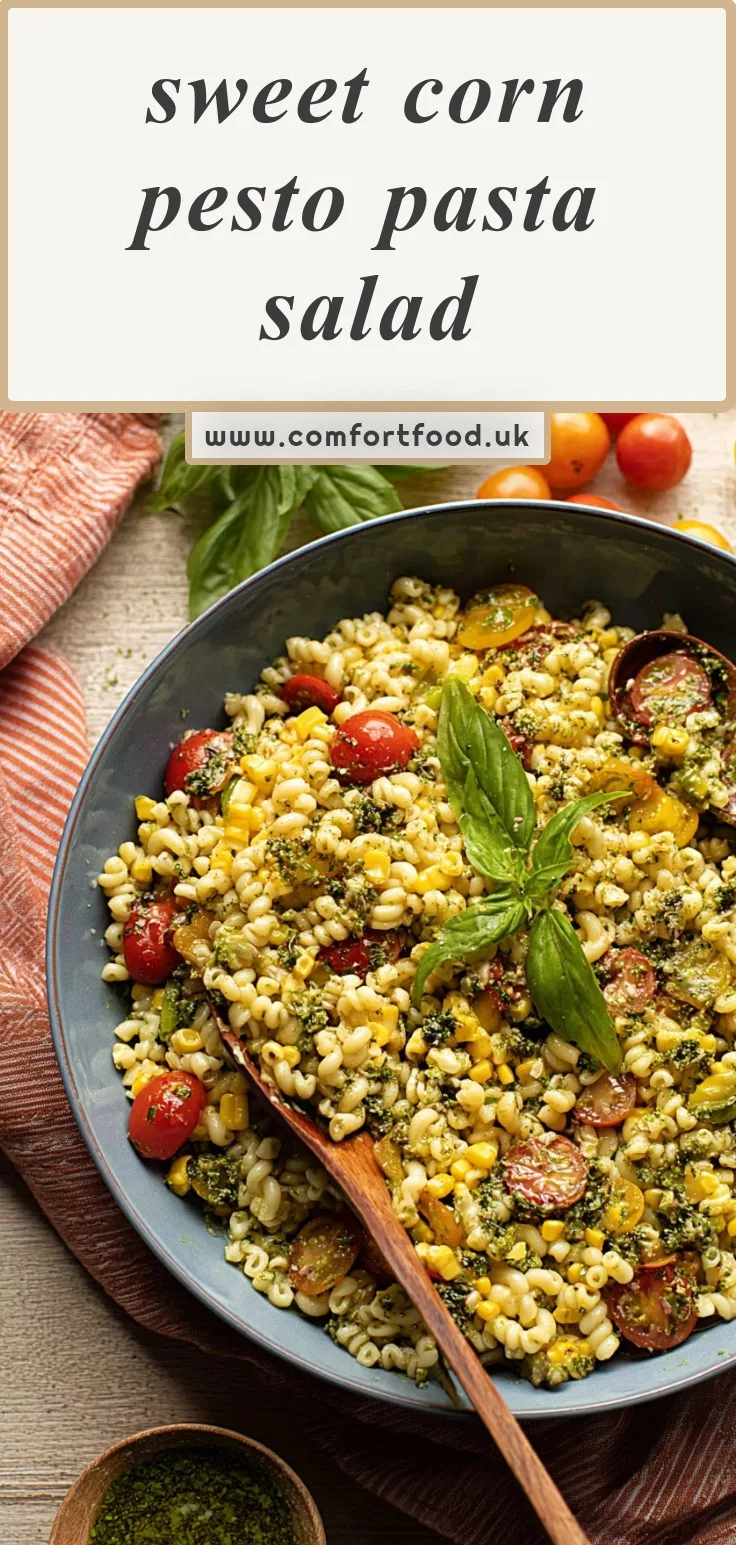Cherry tomatoes cucumbers or zucchini all work. Just dice them small and don’t add too much or the salad gets watery. I’d keep it to one extra vegetable so the corn and pesto stay the main thing.