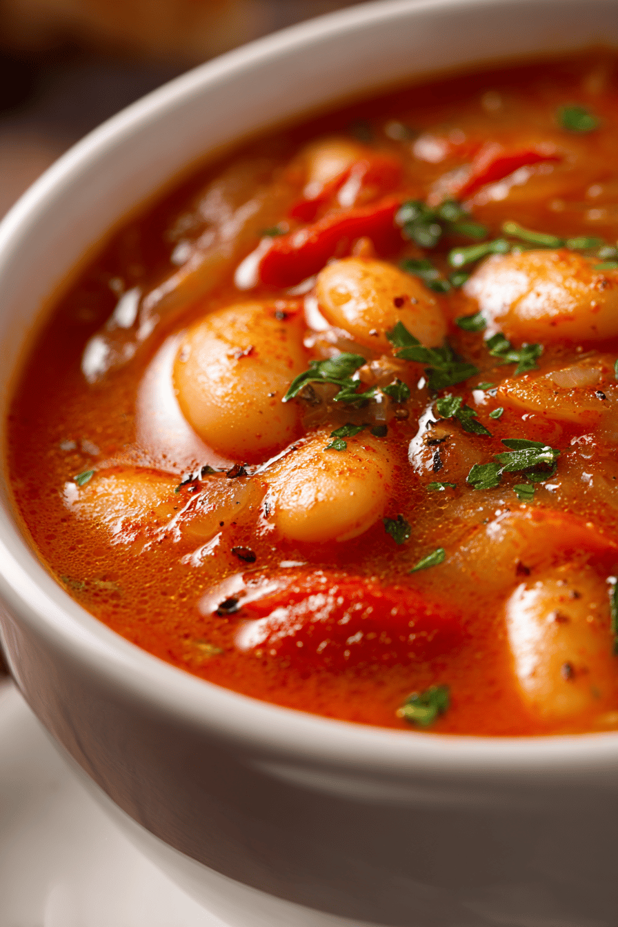 Tomato and white beans — classic combo, yet every time I make it, something changes. I’ve played with onions, celery, different garlic ratios, olive oil amounts. Usually, I overcook the garlic or under-season, ending with flat, tired soup. This one, I tossed shallots instead of onions; the softer, swifter onion flavor pushes the aromatics just a notch brighter. Toss celery in for texture and subtle flavor contrast — keeps it lively. Sometimes, tomatoes can feel one-dimensional — so I added a whisper of smoked paprika, because smoky depth wakes up bland. White beans swap caster beans for something creamier, silkier. I’ve learned to eyeball softness rather than rely on clocks—know your pot! Soups aren’t about rigid times; they’re about aromas thickening, bubbles dancing, textures changing. Puree or leave chunky, both work; pureed is smoother, more comforting on grim nights. I keep some broth handy to loosen, never prayer-to-thickens-only. Salt last because beans hide salt—season carefully. No gluten, dairy, nuts, or eggs; clean, safe for many diets. It’s humble, wholesome, a bit smoky, yet refined. A simple bowl but born from trials and errors in the kitchen haze.