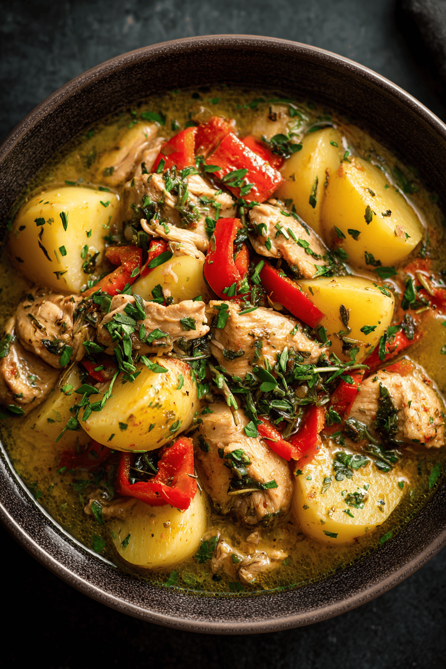 - 💡 Pour in chicken broth then scrape bottom with wooden spoon; release browned bits stuck on pan—crucial flavor base. Simmer just below boil; adjust flame frequently. Potatoes need 35-40 minutes gentle cook, test by piercing fork; slide in easily but hold shape still. If stew reduces too fast, add warm water little by little, never cold.