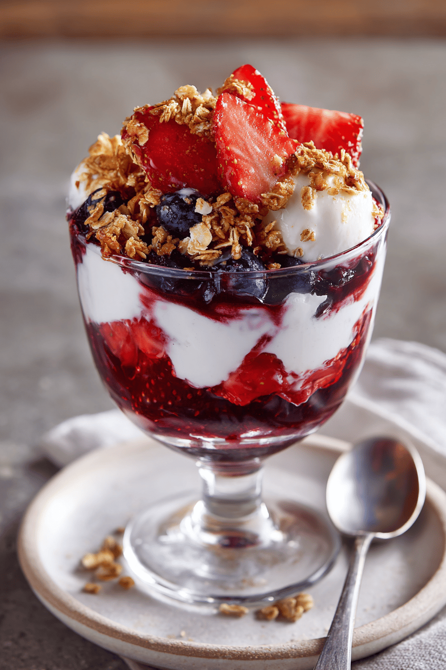 - 💡 Frozen Greek yogurt scoops must be dense and cold. I used plain unsweetened Greek style to keep flavor clean and scoop shape firm. If yogurt too soft, layers melt into mush. Freeze yogurt scoops separately before layer assembling. This avoids quick melting. Cold yogurt plus chilled glass equal sharp contrast you want. Greek yogurt thicker than usual ice cream—no fading fast here.