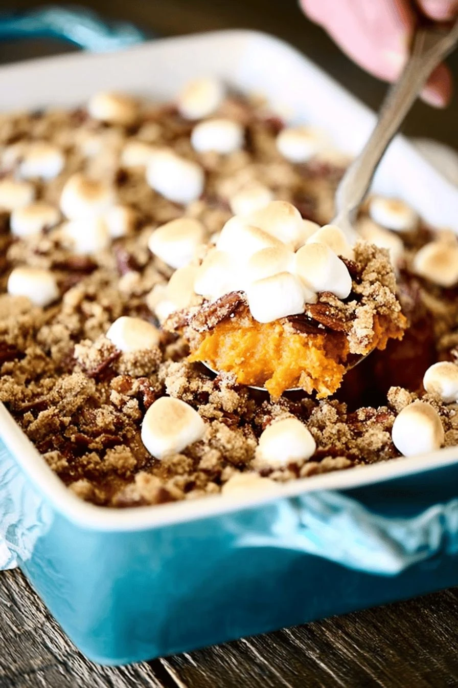 Sweet Potato Casserole with Pecans & Marshmallows