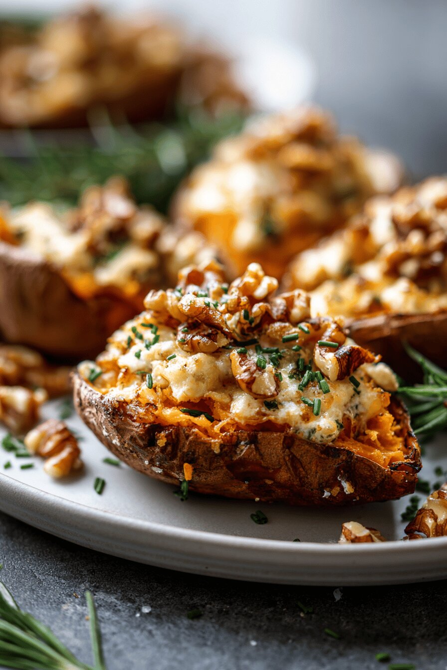 - Top with remaining shredded smoked gouda and reserved walnuts for texture contrast.