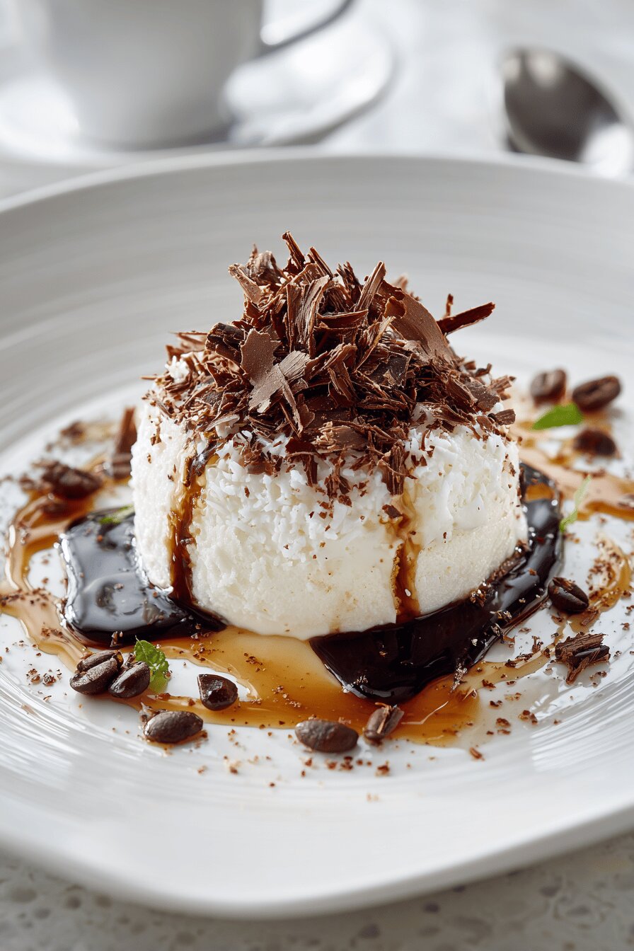 - 💡 Dark chocolate shavings for garnish last. Use microplane for fine dust or thin curls with sharp knife. Crunch contrast important; melts quickly otherwise. Dark chocolate bitters cut sweetness and fat. Sprinkle just before serving; melts under heat fast. More chocolate means bitterness grows, balance carefully. Use high cacao for richer effect. Texture important here; chocolate sound crunch enhances experience. Skip nuts entirely for texture purity.