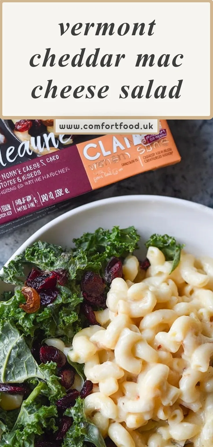 So I tried making this Vermont Cheddar Mac Cheese Salad thing last Tuesday after I got home from work and I wasn’t really planning to but I had all the stuff sitting there. It’s basically that Lean Cuisine Mac and Cheese box but you serve it next to a kale salad with apples and beans and it somehow works way better than it should.