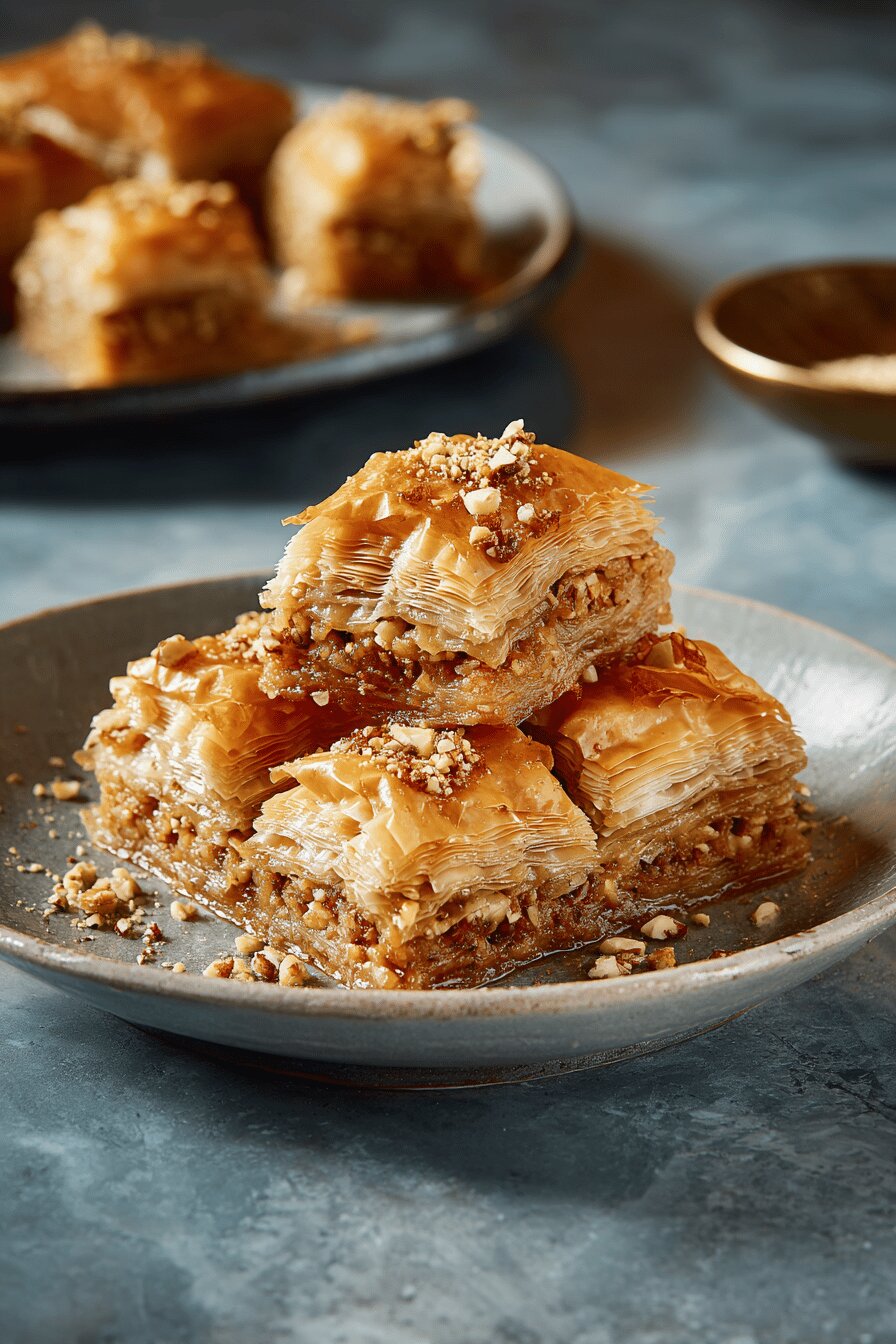 Airtight container at room temp up to 10 days if no humidity. Refrigerate short term if necessary but expect loss of crispiness. Leftover baklava reheats well brief toaster oven flash to refresh texture. Avoid freezer; phyllo texture suffers badly from thawing moisture.