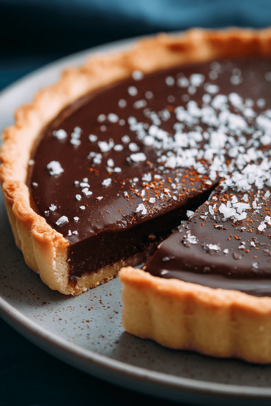 - 💡 Finish tart warm or just warmish. Sprinkling fine sea salt and pinch of chili powder right before serving adds sharp contrast and unexpected warmth. Chili powder subtle not overpowering but adds depth. Salt sharpens chocolate notes. Serve with vanilla ice cream or bitter coffee to balance richness. Room temperature makes crust edges degrade texture fast; best eaten soon after resting.