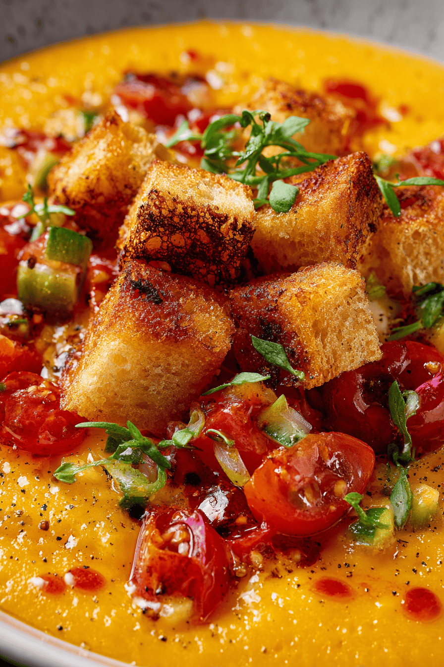 - 💡 Toasting bread cubes: heat olive oil first, medium-high but no smoking. Add cubes, toss constantly; bread burns fast and bitterness kills contrast. Remove at golden crisp, not dark. Drain well on paper towels, salt lightly while still hot. Serve bread on side or sprinkle on top last minute to keep crunch. Country or rustic bread best; soft sandwich bread ruins texture. Crust removal helps uniform toasting. Butter okay but changes flavor and richness.