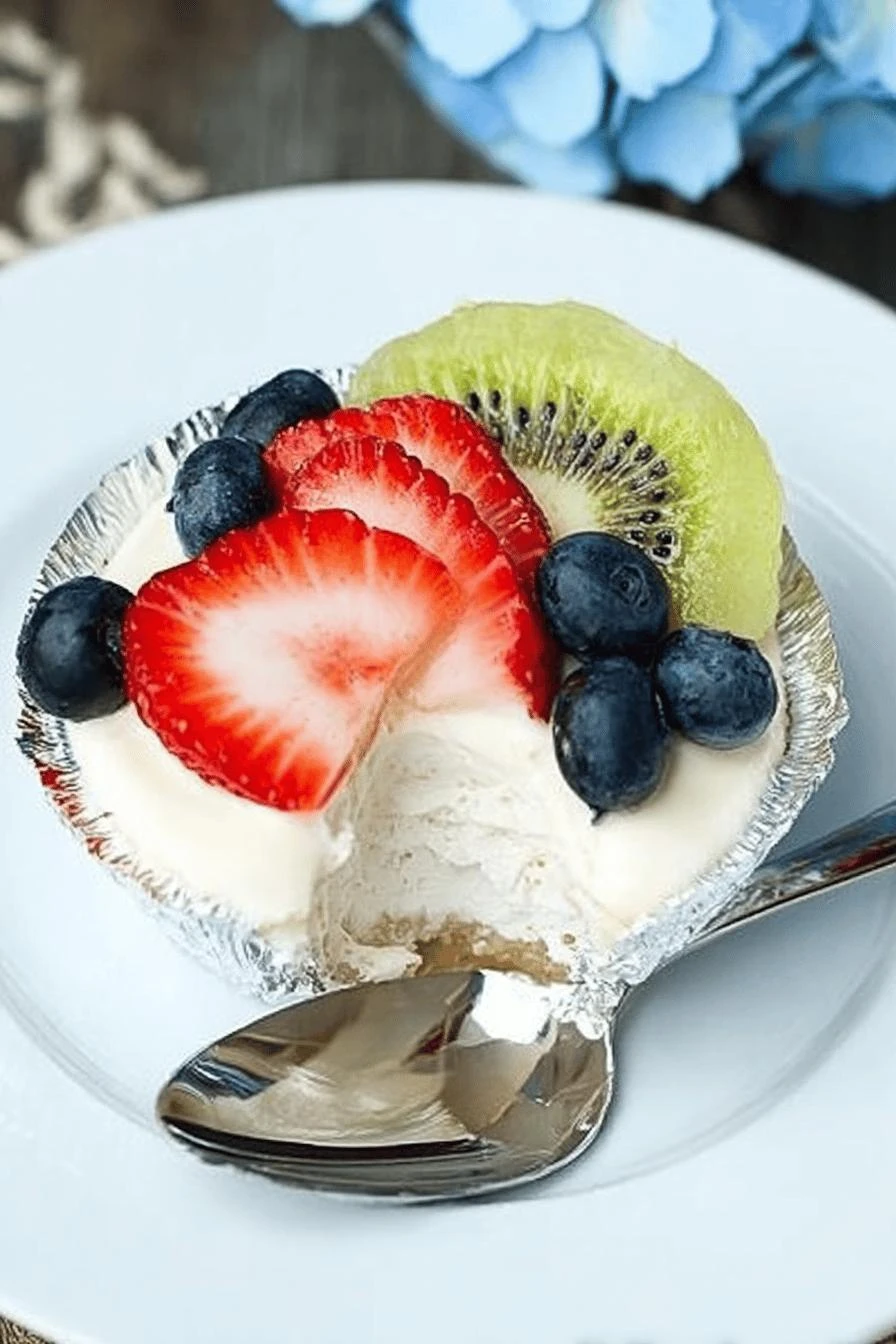 Top with fresh berries. Strawberries, blueberries, kiwi. Or mango. Raspberries work too. A drizzle of honey if you want something else. You don’t need to — the lemon’s already plenty — but it works.