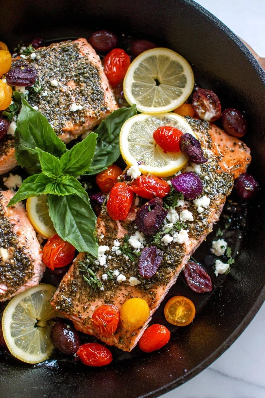 - 10 Mix kalamata olives, capers if using, parsley, and a small splash of reserved dressing to hold it together without drowning flavors. The olive mixture adds briny bursts and fresh herbal punch—a contrast to the mild salmon.