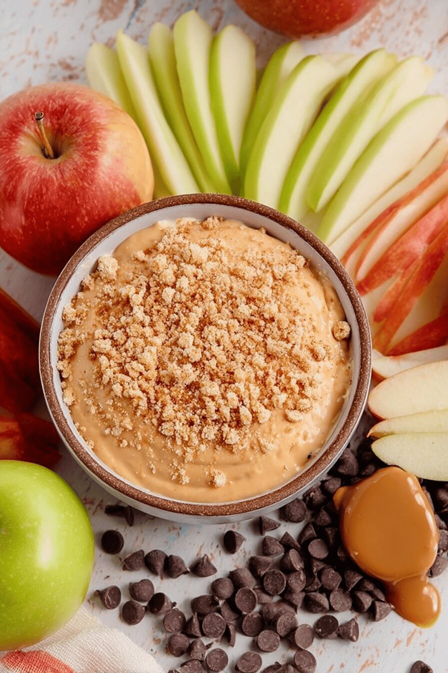 - 💡 Spread mixture thick enough so dip doesn’t runny or dense; thin mixing dishes make it sloppy and thick ones dosing is tough. Toffee bits glue immediately from caramel sticky; chocolate chips scatter last or chill may melt them slightly but good melt contrast. Apple slice type matters—Granny Smith or Honeycrisp hold shape, acidic bite cuts sweetness nicely. If sweetness too much, swap half brown sugar with maple syrup; adjust salt accordingly makes big flavor difference—too little kills balance, too much dominates. Reheat caramel gently; microwave bursts, stir in between. Microwaving uncovered caramel burns or seizes fast.