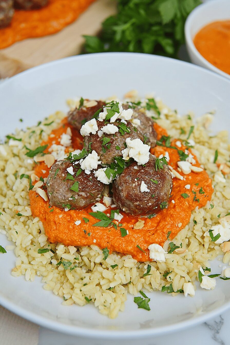 - 💡 Leftovers reheat in 350°F oven best, keeps crust crisp, stops meatballs steaming soggy. Avoid microwave for texture. When plating, don’t dump sauce; ladle gently to keep orzo visible under meatballs. Fresh herbs like chopped parsley or mint scattered last minute lift aroma and give color pop but optional. Meat temp matters; cold lamb mix binds better but room temp before baking cooks more even inside. Timing estimates rough; use sight and sound cues.