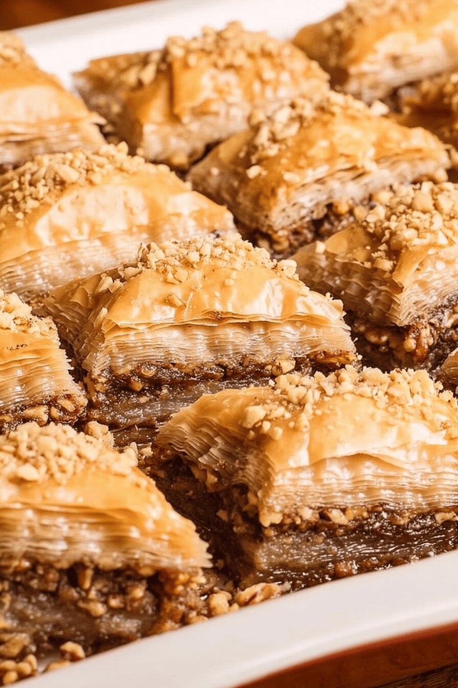- 💡 Pour cooled honey syrup on hot baklava slowly, cover every crack. Let soak 3-5 hours minimum, 10-12 ideal. Avoid fridge—phyllo goes limp. For salty contrast, sprinkle coarse sea salt or fleur de sel just before syrup sets. Dry cloth on top if storing longer to save crunch.