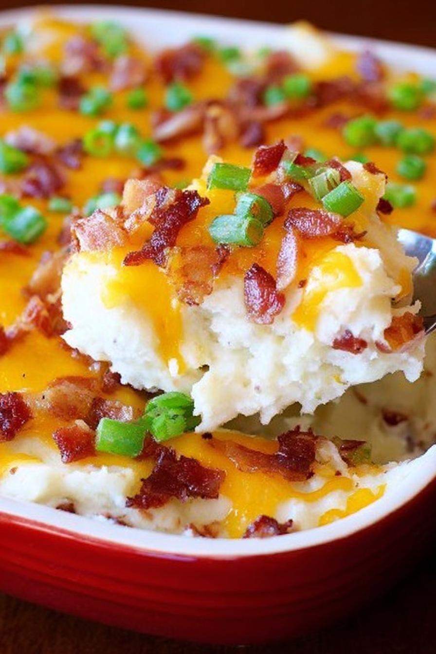 - 💡 Warm instant potatoes gently; too hot kills starch structure. Use spoon, no mixer, fold sour cream and powders. Keeps texture chunky, not gluey or gummy. Half cheese and bacon mixed in distributes flavors below crust.