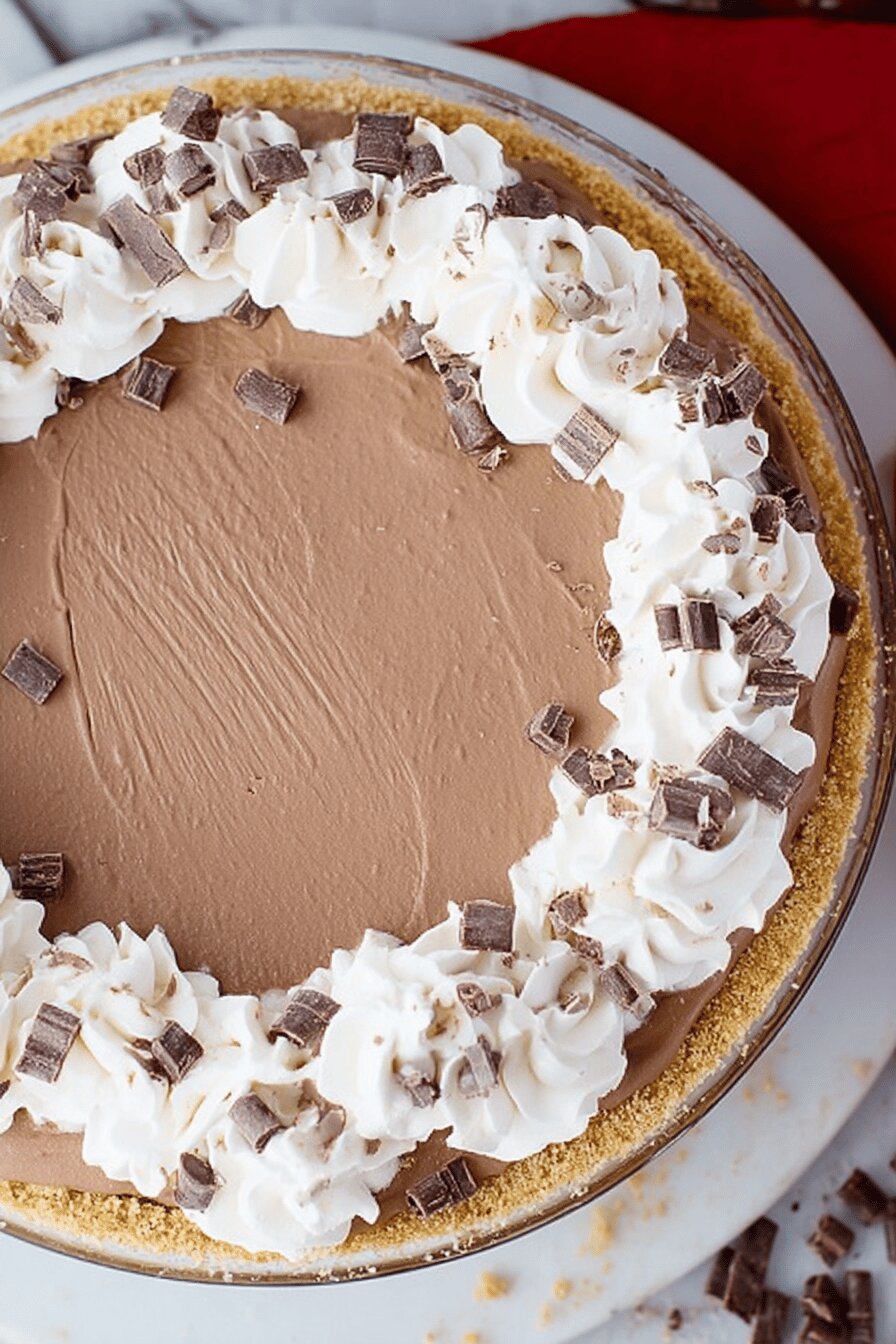 Cream cheese whipped till airy then folded with melted chocolate and butter. Powdered sugar brings subtle sweetness. Spread into crumbly crust, chilled to set. Serve cold with whipped cream and vanilla ice cream. No oven needed. A quick, smooth chocolate cheesecake with easy assembly. Familiar taste but with buttery richness, luscious texture. Attention to chocolate melting, cream cheese fluffiness essential. Takes about 20 minutes prep; chilling time varies. Twelve servings. Classic American dessert, versatile and forgiving. Substitutions possible for health or pantry limits. Tips included for texture, flavor, and troubleshooting.