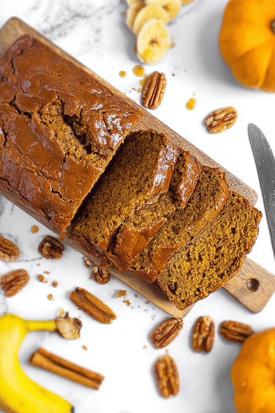 Dense, moist banana bread hybrid with pumpkin and a hint of cardamom swapping old pumpkin pie spice. Brown sugar and coconut oil keep it rich. Toss pecans or walnuts for crunch. Caramel drizzle optional but highly recommended for that sweet, gooey finish. Bake until the top’s deep golden and toothpick comes out with a crumb or two — don’t overbake. Mixing dry in thirds prevents lumps. Use almond milk if whole milk missing. Watch batter texture, adjust flour slightly if bananas ultra mushy. Smell cinnamon, feel batter thick but stirrable. Expect about 8 servings with hearty slices packed in flavor.