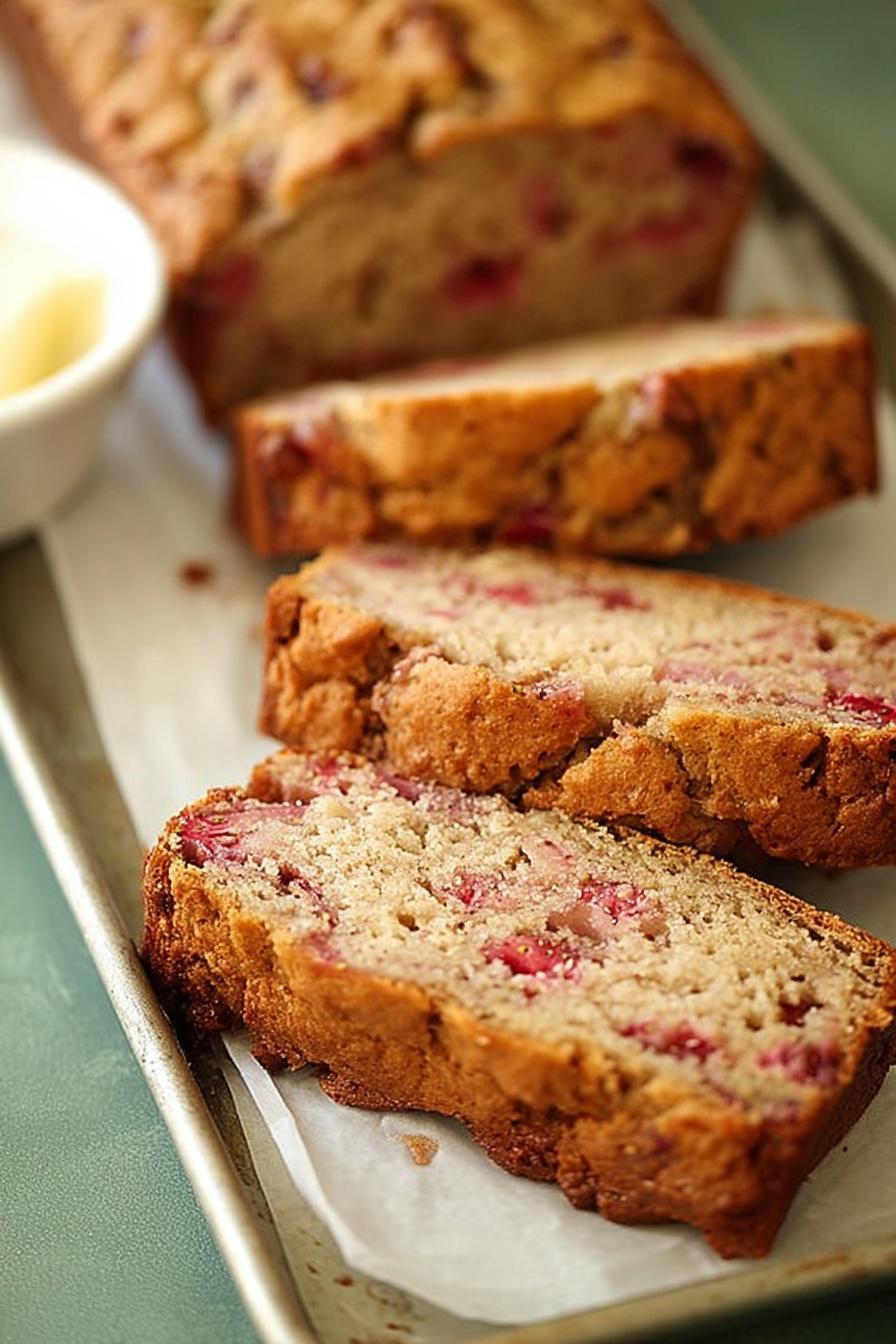 - 💡 Dry mix first—flour, salt, sugar, honey, baking soda, cinnamon. Whisk thorough or rise uneven, metallic taste sneaks in. Pecans toss in gently, no over-swirl. Wet mix separate bowl melted butter and eggs; lumps kill texture, whisk till smooth. Pour wet into dry, fold just no dry flour visible. Berry chunks look suspended like rubies, no mush. Tap pans before oven to pop out big air bubbles, no holes later.