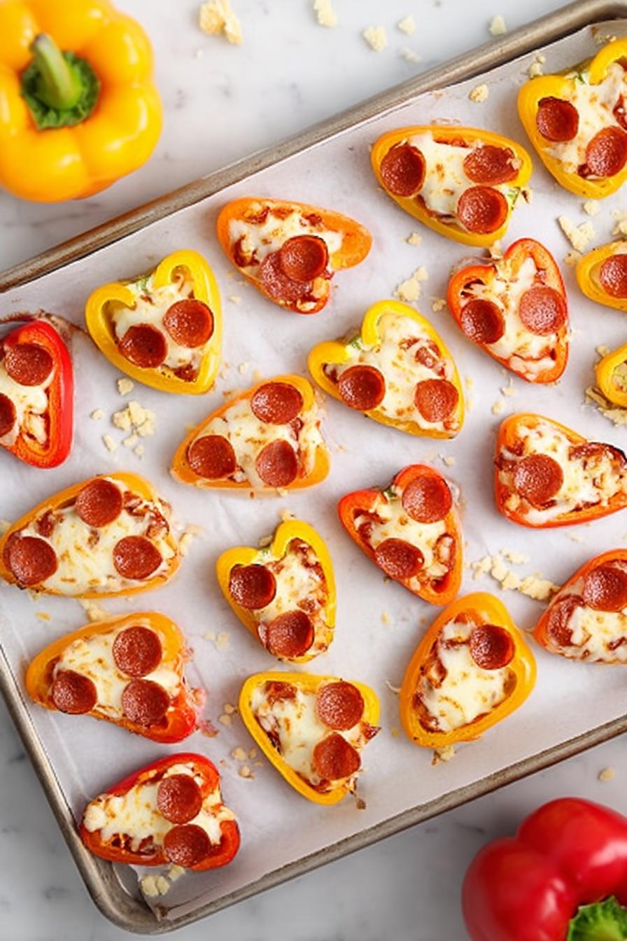 - 💡 Bake 7 to 12 minutes; watch cheese wrinkle and form crispy tiny bits. Peppers should soften but hold shape. Give a gentle poke—too limp means overdone. If prepping ahead, refrigerate and reheat swiftly under broiler 1 or 2 minutes—revives crisp edges and melty cheese without drying peppers out.