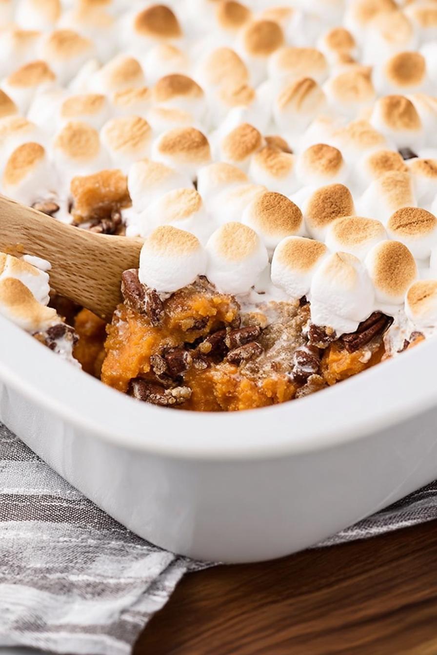- 💡 Fold nuts gently, do not overmix or pecans crush into mush. Half in the mash, half on top keeps crunchy contrast. Toast nuts lightly before adding if you want extra aroma; raw nuts can feel dull once baked under marshmallows.